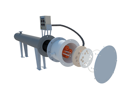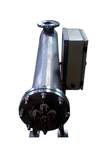 Equipo utilizado para calentar un pasaje de fluido en una cañería de flujo continuo. El mismo cuenta con entrada y salida bridadas para conexión a la cañería.